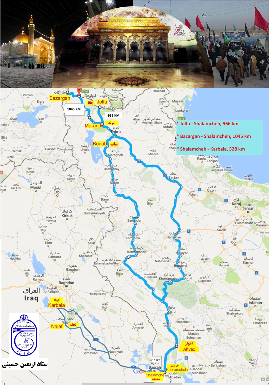 فاصله شلمچه تا کربلا : 528 کیلومتر